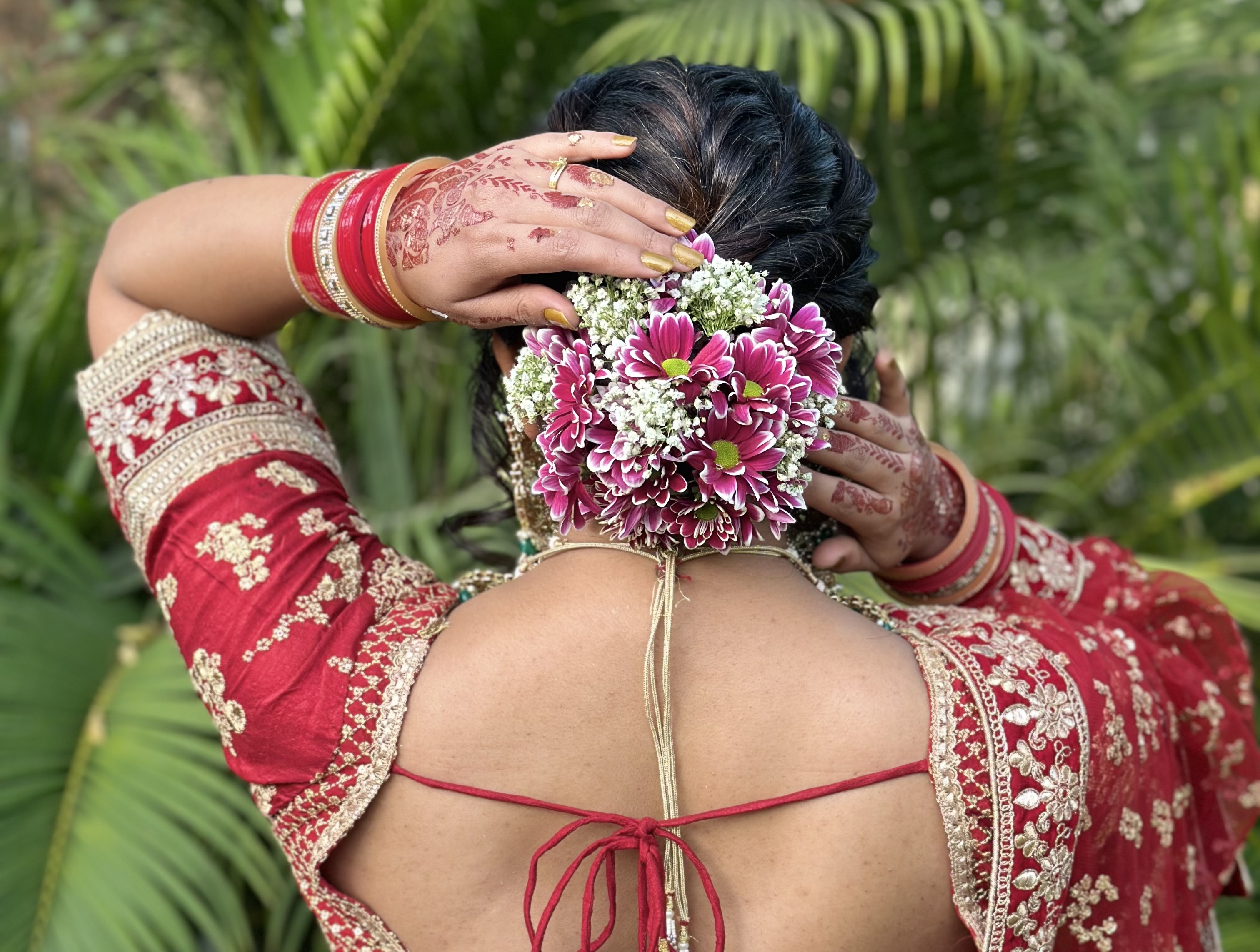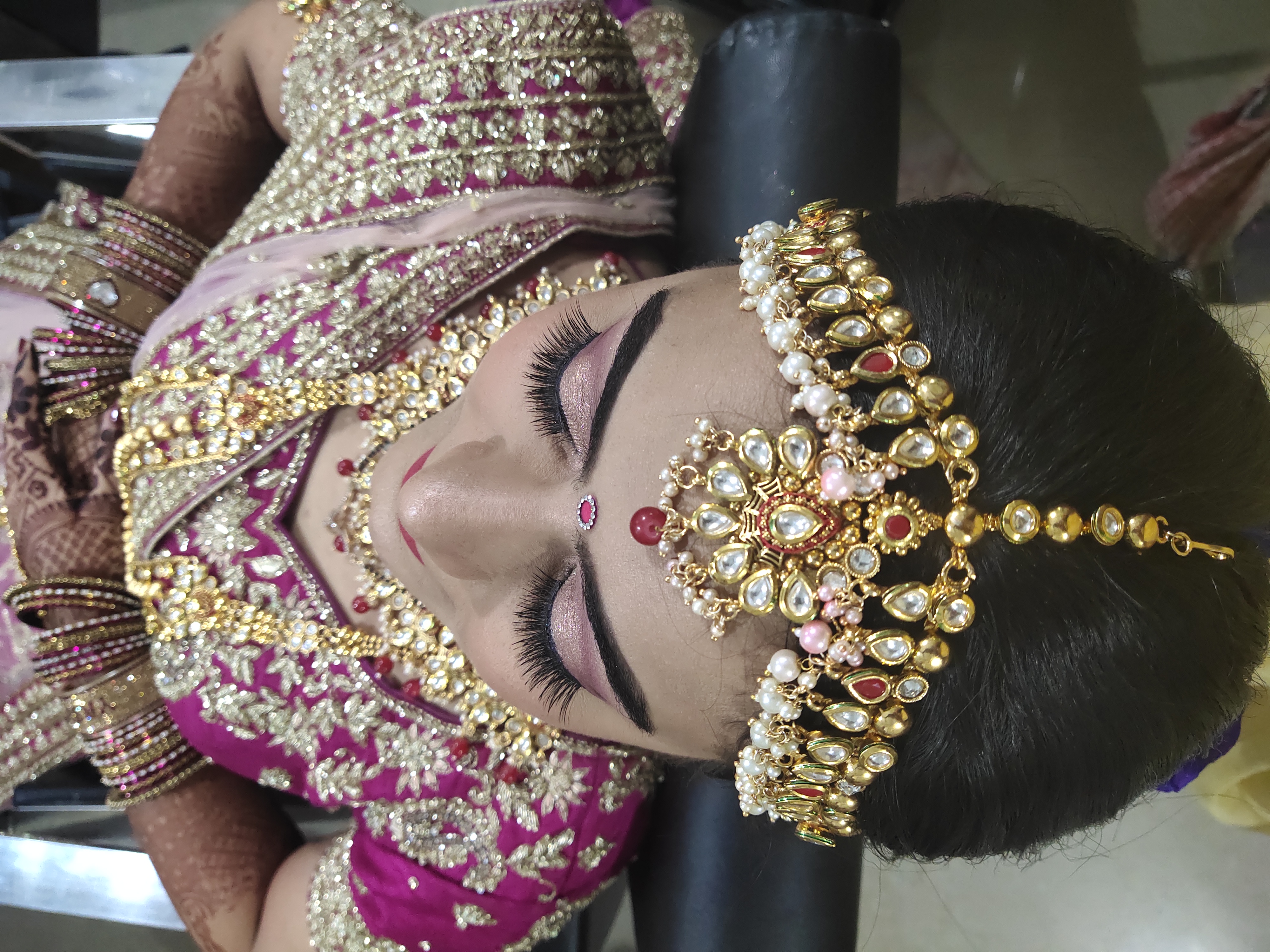 Our stylist consults & delivers you a precision bridal makeup.